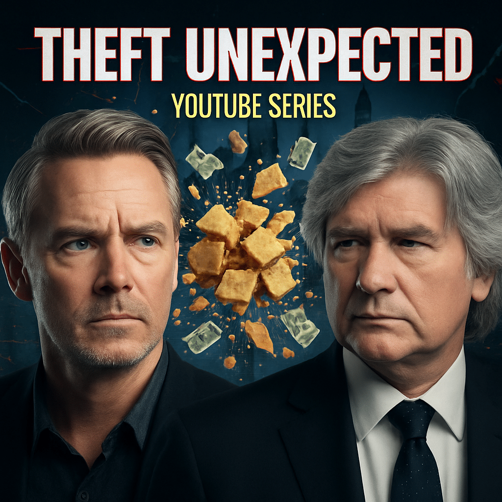 As the video editor on Theft Expected, I worked across multiple forms of media to shape the tone and pacing of the series. This included designing layered background visuals, crafting custom foley and ambient sound, and selecting audience reactions and background music to heighten comedic tension. Every editorial choice was made to support the humor—using silence, timing, and subtle sound cues to turn a small, polite conflict into an escalating, funny moment without relying on heavy dialogue.